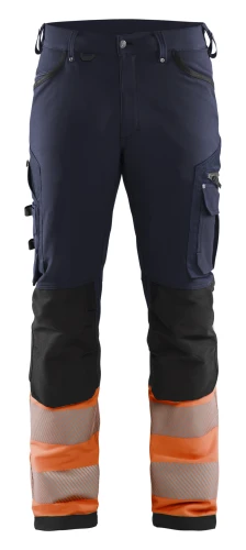 Il est doté de poches pratiques avec renfort CORDURA®, une poche de cuisse à soufflet avec fermeture éclair, une poche pour règle pliante, des poches avant, des poches arrière avec rabat et des porte-outils fonctionnels, par exemple des boucles pour tenir les marteaux.