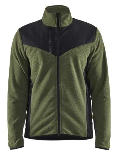 Cette veste de travail est fabriquée dans un matériau unique que l'on peut décrire comme une polaire tridimensionnelle.