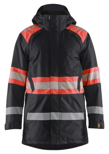 Een winterparka High Vis klasse 1 met functioneel design en gewatteerde voering.