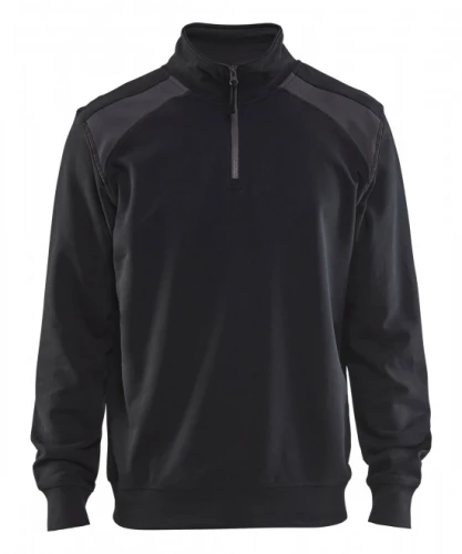SWEATSHIRT BI-COLOUR MET HALVE RITS XS Zwart/Donkergrijs
