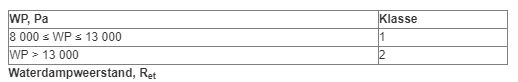 De WP geeft aan in welke mate er weerstand wordt geboden aan water dat vanaf de buitenkant door het materiaal dringt. Materiaal en naden zijn getest op het doordringen van water.