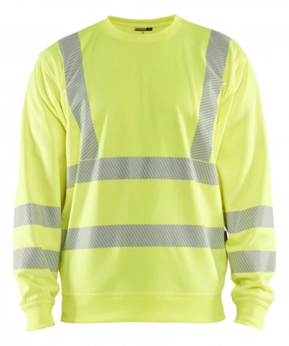 Sweatshirt à col rond en classe 3 haute-visibilité avec bandes réfléchissantes segmentées pour une meilleure visibilité.
