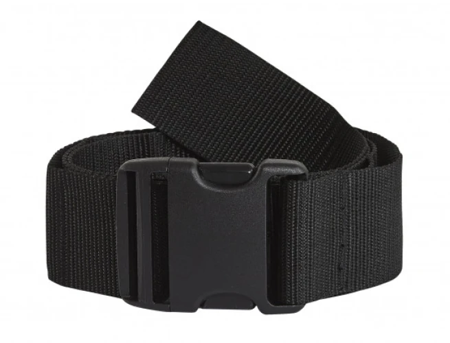 Ceinture tissée réglable avec boucle en plastique.