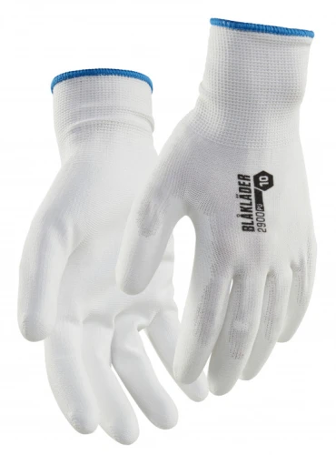 Synthetische handschoen, handpalm ondergedompeld in polyurethaan.