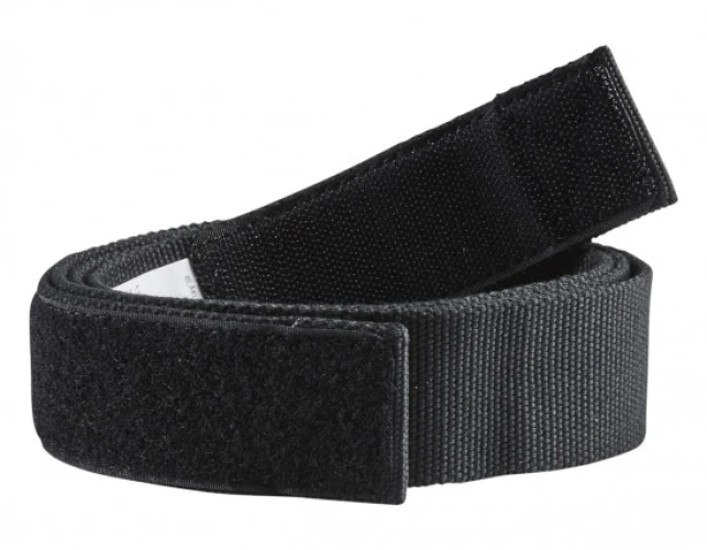 Metaalvrije riem zonder gesp met klittenbandsluiting.